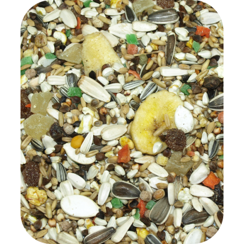 Veľmi bohatá zmes zrnín pre papagáje s obsahom ovocia ( ananás, papája, hrozienka..).